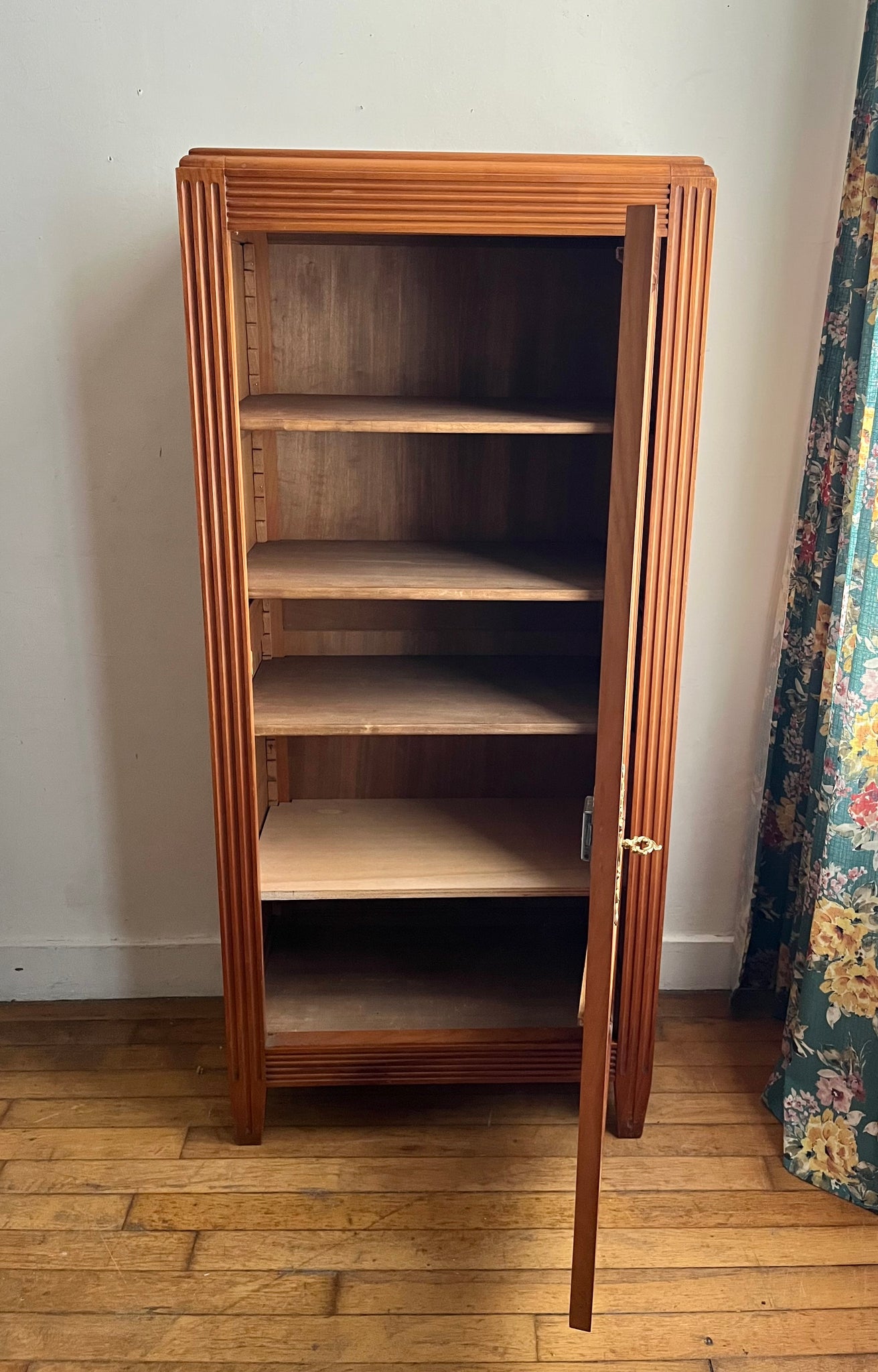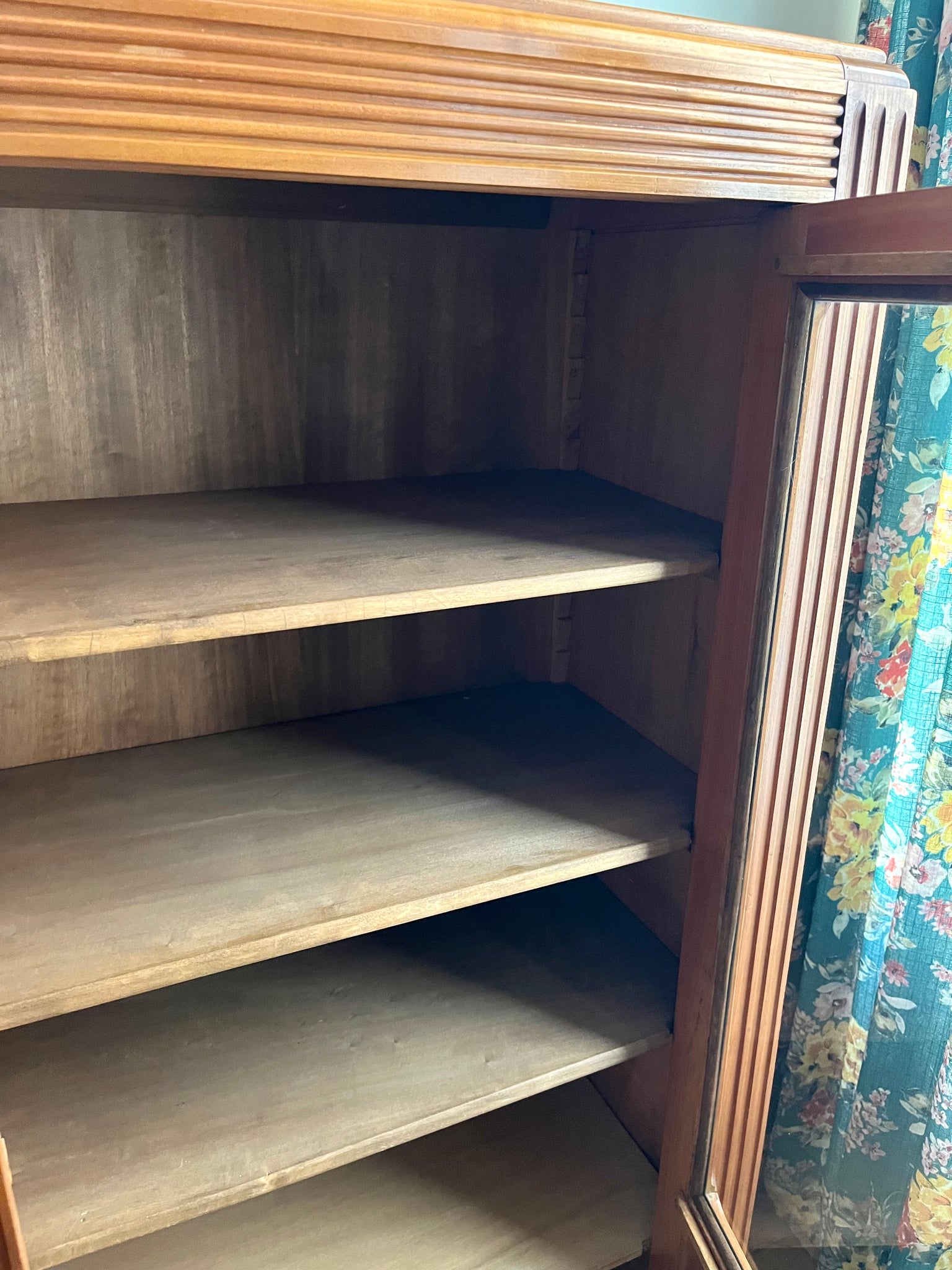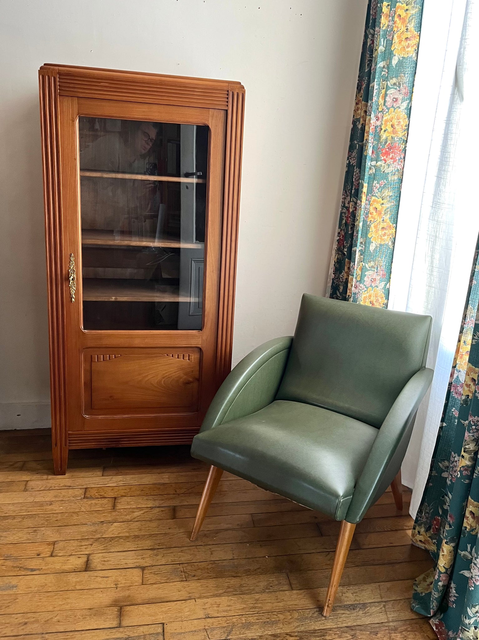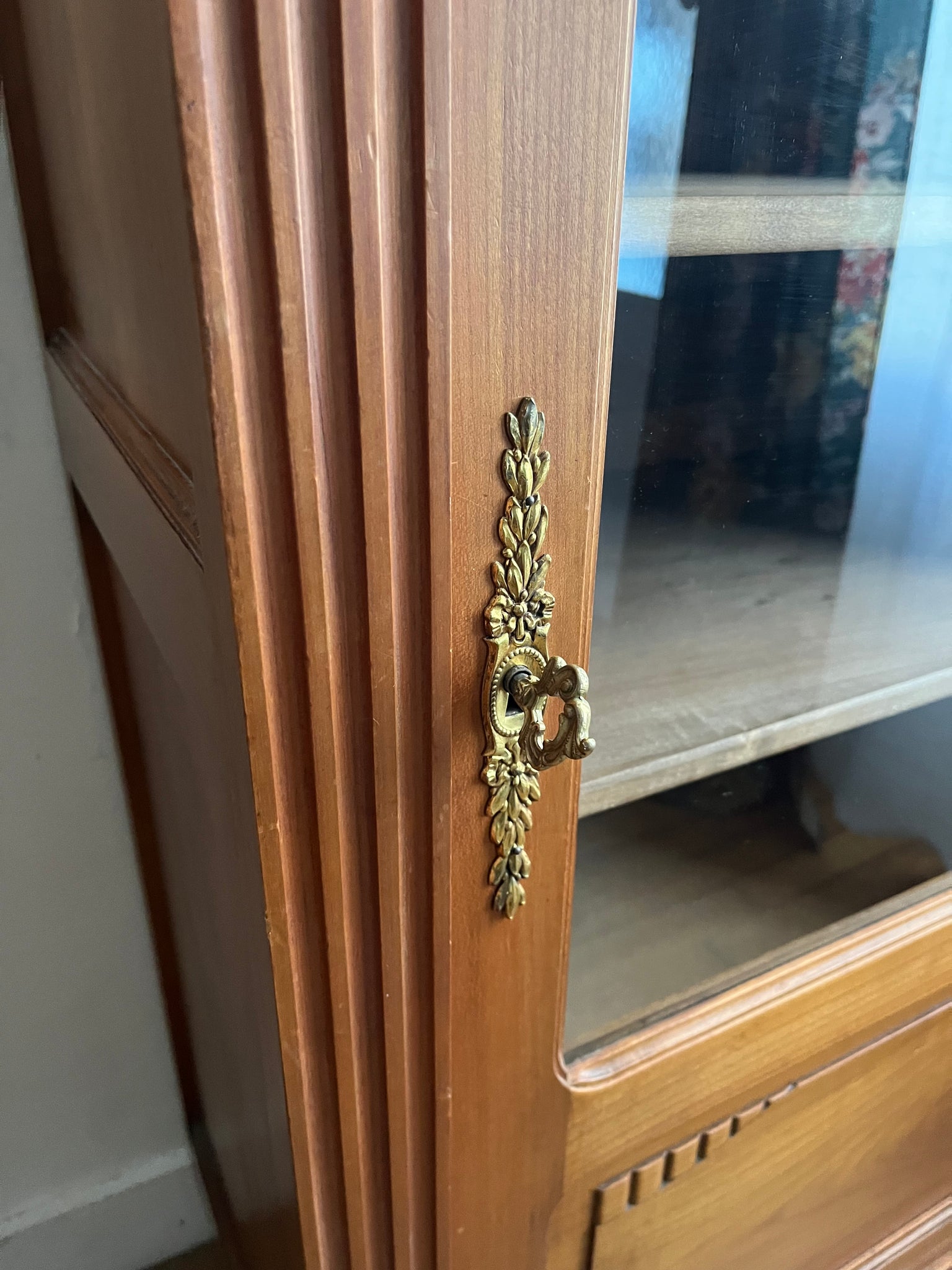Bonnetière vitrée en bois teinté en très bon état d'usage. 4 étagères intérieures qui offrent une bonne capacité de rangement pour ce petit meuble qui occupe qu'une faible place au sol. Une pièce pleine de charme qui trouvera facilement sa place.